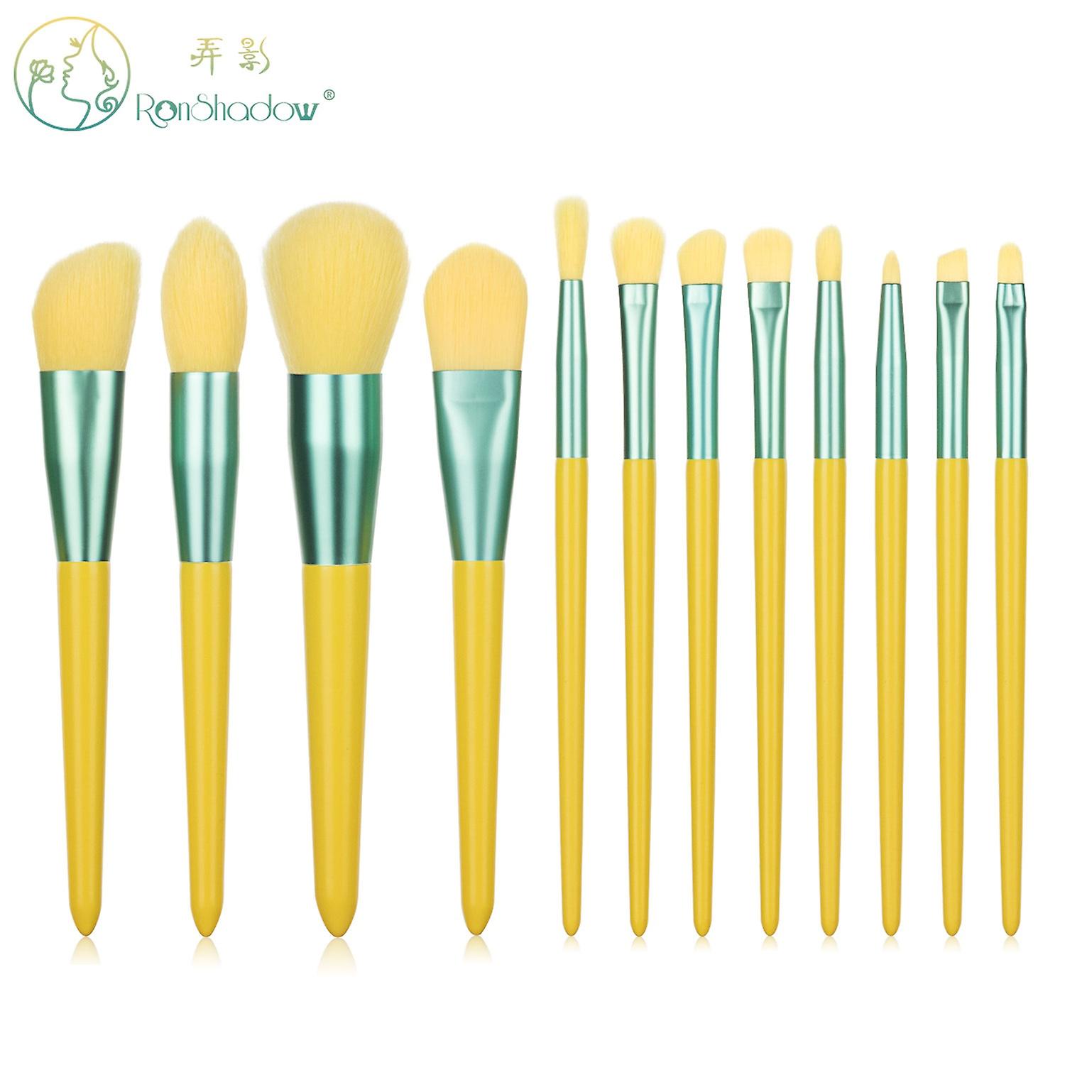 Brushes 12Pcs Lemon Makeup Brush Set Premium Synthetic Goat Foundation Eye Shadows Blending Face Pow