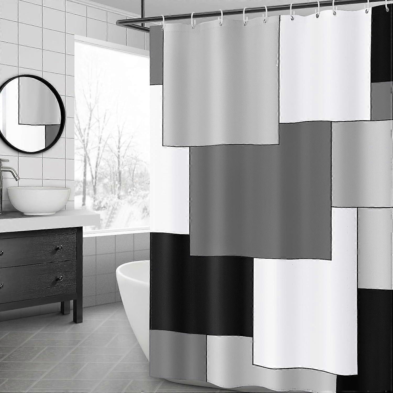 Black and Grey Shower Curtain Mordern Geometric Gray Shower Curtains for Bathroom 72 x 72