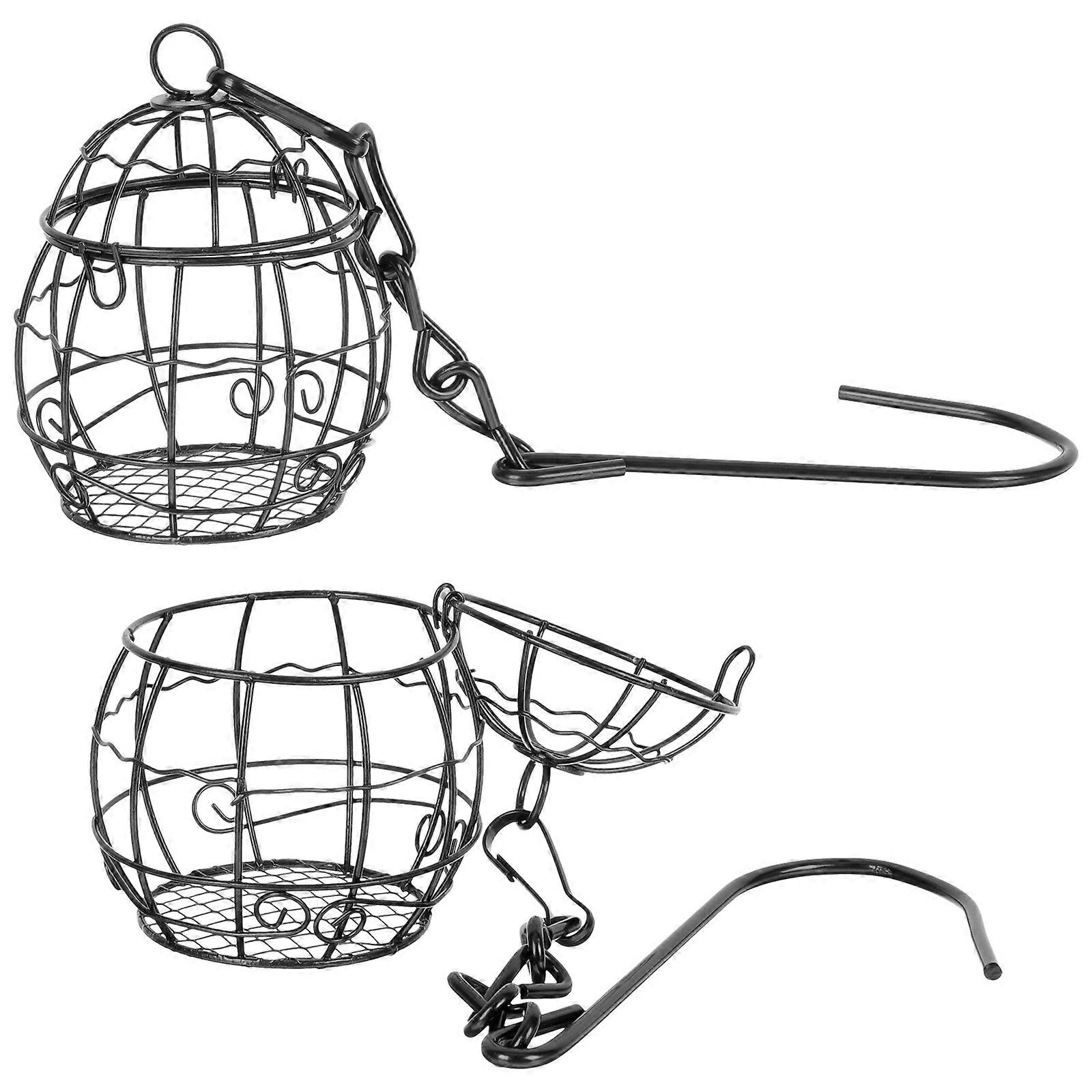 Black Iron Wire Hanging Bird Feeder with Chain for Outdoor Garden Use 2 Pcs