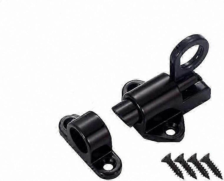 Black Aluminum Alloy Sliding Door Latch, Small Spring Security Lock for Bathroom/Gate/Cabinet Use