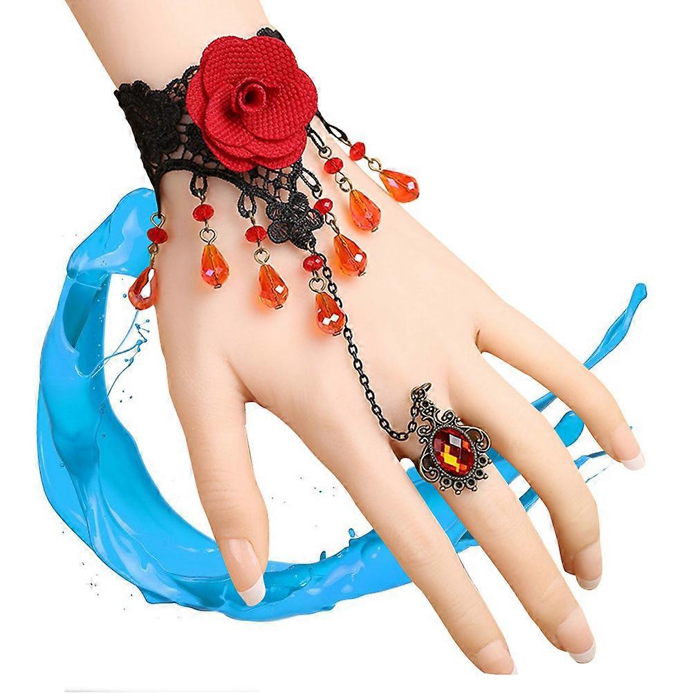 Black Alloy Lace Bracelet with Attached Ring Comfortable and Lightweight for Any Occasion 0.8 Inches