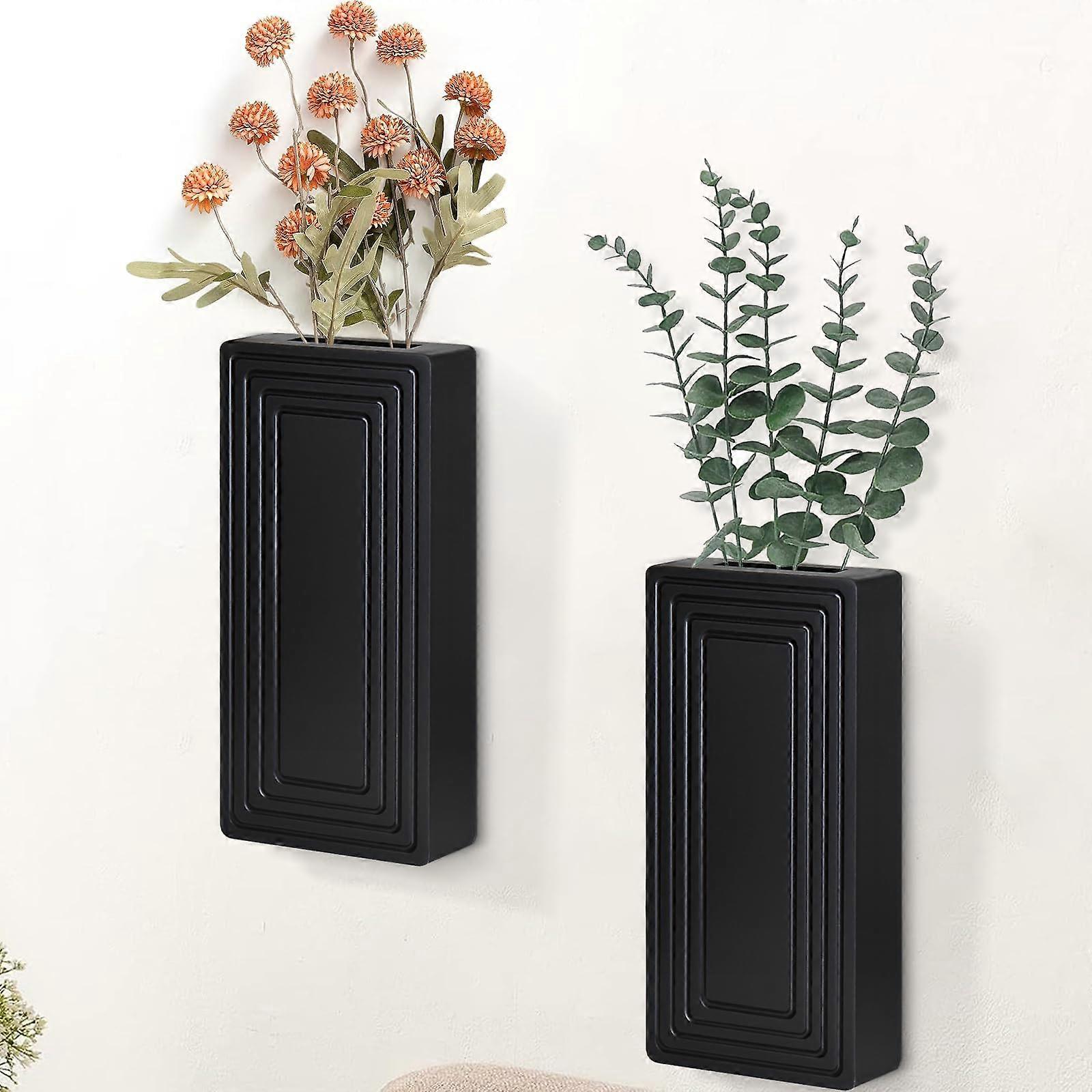 Black Wood Wall Planters 2 Pack for Indoor Use in Bathroom and Living Room, Decorative Vertical Garden Holders