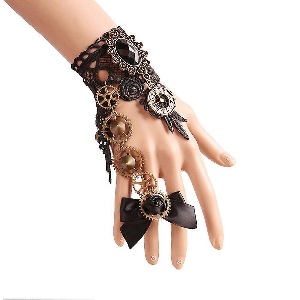 Black Elegant Lace Jewelry Bracelet With Finger Ring Ideal For Daily Wear And Party Celebrations 1Pack