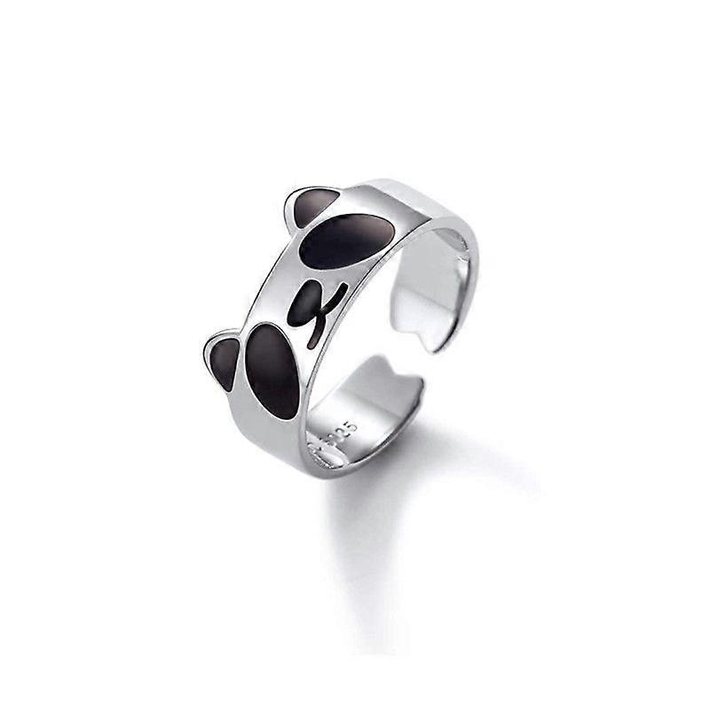 Black Oil Drip Enamel Panda Ring, Trendy and Elegant for Women