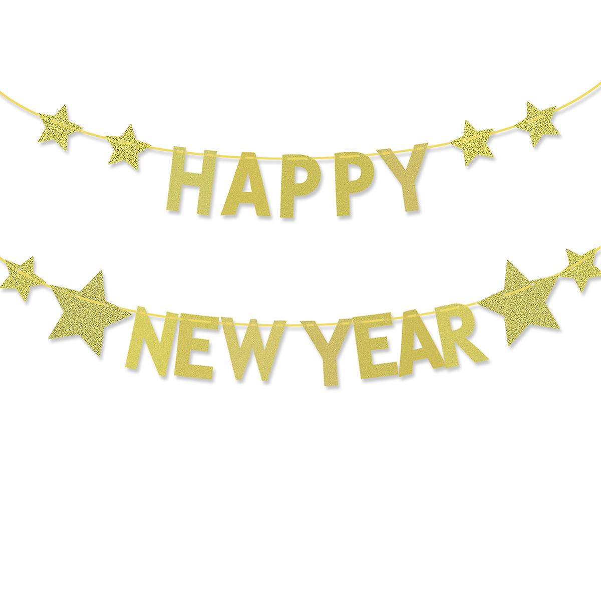Black Garland New Year Banner 2021 New Years Eve Party Favor Happy New Year Banner
