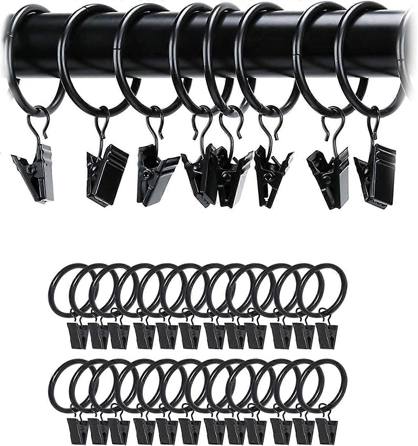 Black Curtain Rod Ring Clips, Rustproof Metal Drapery Ring with Hook/Hanger Clips with Eyelets for Holding Heavy Curtains Rod Set and Drapes (24pcs, b
