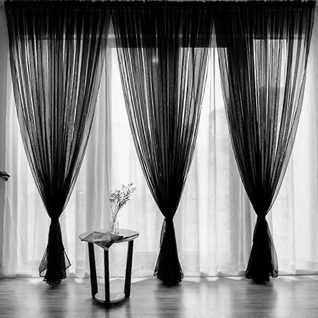 Pack of 3 Black Curtains, Transparent Curtain Set, Modern Bedroom Living Room