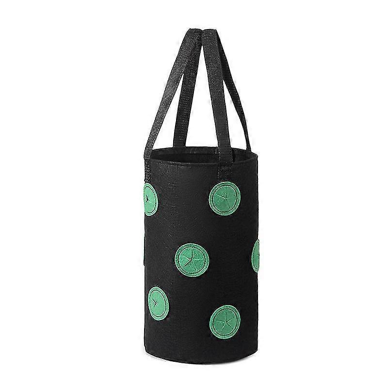 2pcs In Black Green Dot + Black Red Dot Non Woven Strawberry Growing Bag With Handle, 12 Planting Holes Growing Bag, Tomato And Strawberry Plant Hangi