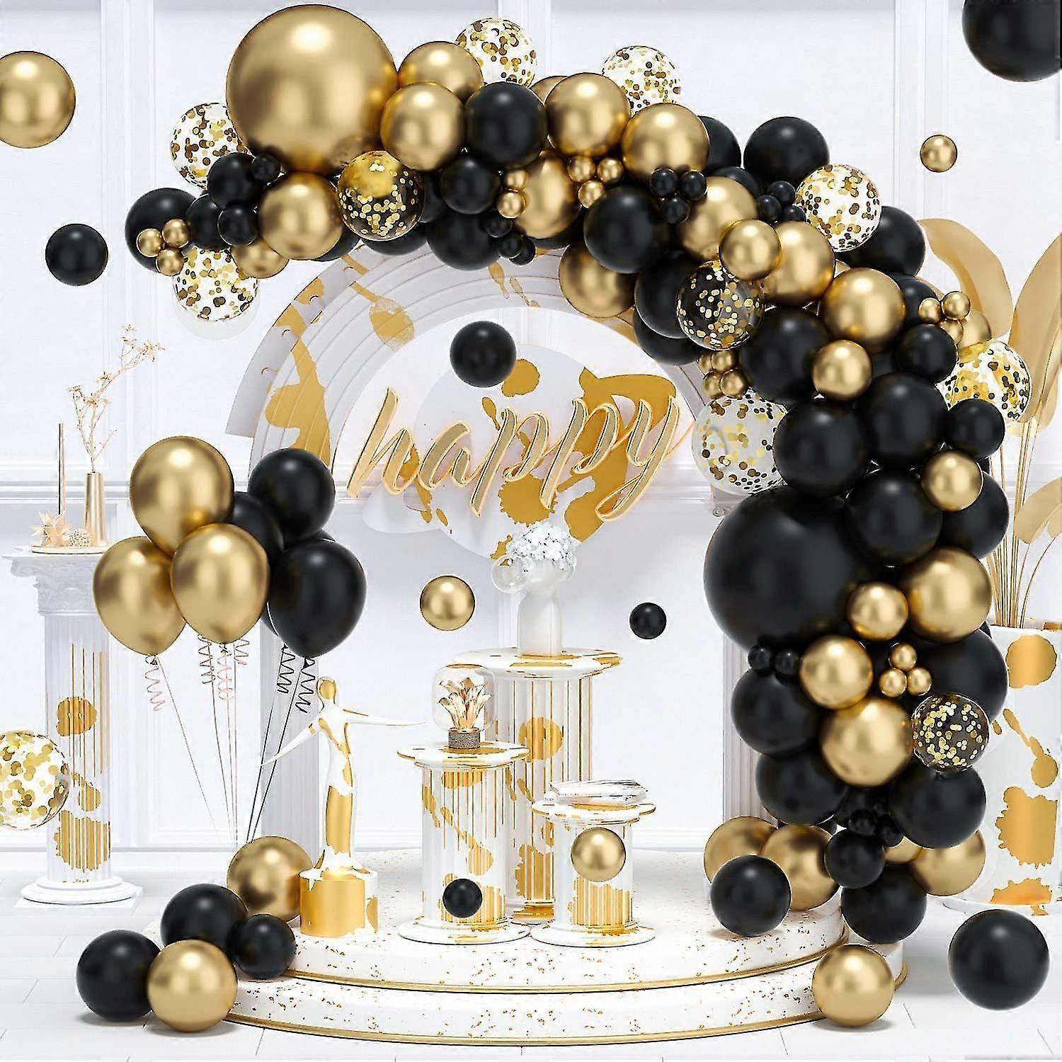 Black Gold Balloons Garland Kit - 122PCS Metallic Confetti Balloons for Graduation, Birthday, Wedding Decor with Strip & Ball