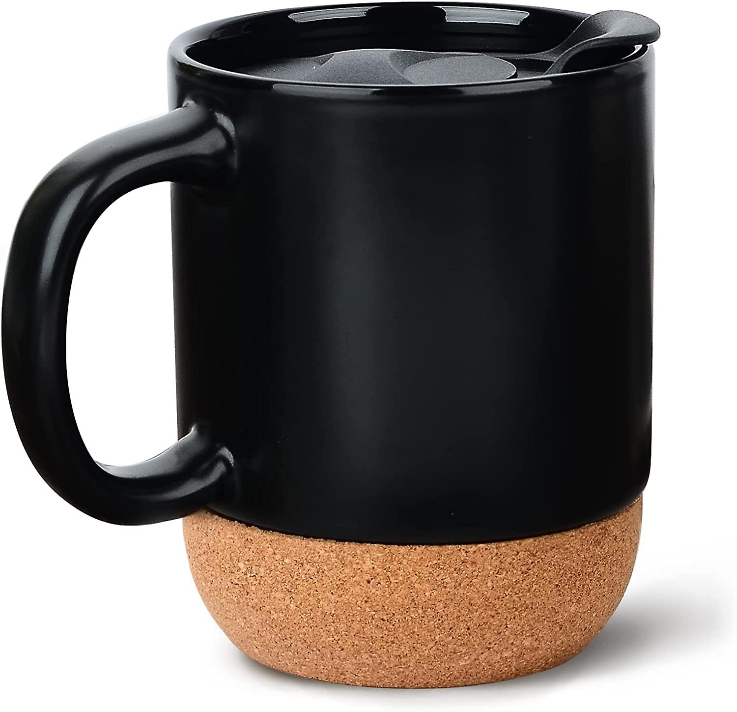 Black Coffee Cork Mug - Anti Spill 12 Oz Travel Coffee Mug with Handle Matte Ceramic Coffee Mug Cup Tea Cup with Insulated Cork Bottom favorite child
