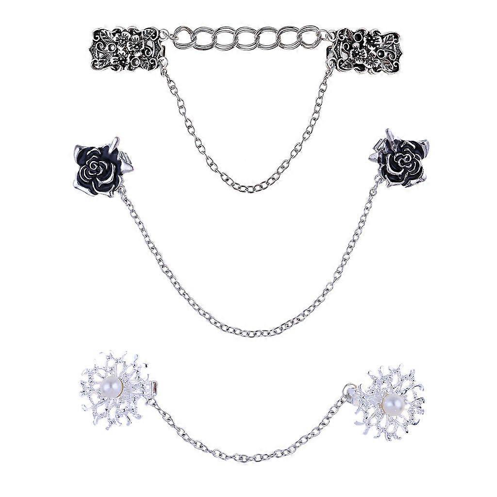 ["brand new and high quality\r\nFeatures:\r\nVintage wind sweater shawl clip, simple and stylish design, elegant and refined.\r\nThe clips are made of high-quality zinc alloy and are beautifully crafted and durable.\r\nEasy to use, the alligator clip is designed with small serrations that can be easily opened and clipped to the garment without damaging the garment for good grip.\r\nA practical clothing accessory, suitable for sweaters, collars, shawls, jackets, etc., not only to keep clothes neat, but also for clothing decoration.\r\nA set of three different clips can be used to meet your different needs.\r\nCollar clip only, other accessories demo in the picture is not included!\r\n\r\nSpecification:\r\nType: Women collar clip\r\nMaterial: Alloy\r\nColor: As pictures shown\r\nSize: As pictures shown\r\nQuantity: 3 Pcs/set\r\n\r\nNote: \r\nNo retail package.\r\nPlease allow 0-1cm error due to manual measurement. pls make sure you do not mind before you bid.\r\nDue to the difference between different monitors, the picture may not reflect the actual color of the item. Thank you!\r\n\r\nPackage includes:\r\n3 Pcs x Collar clip"]