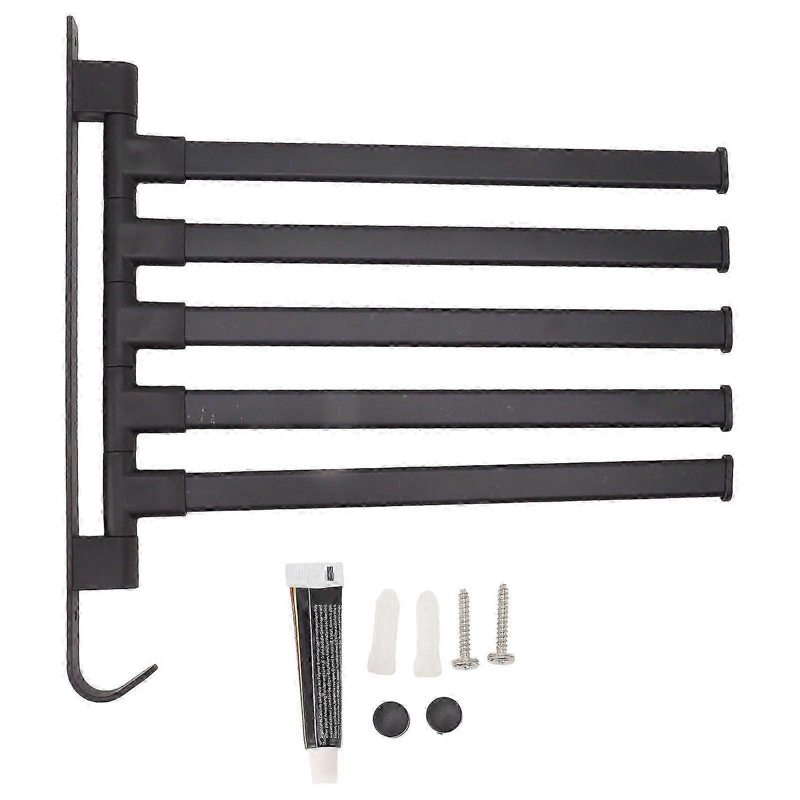Black Swivel Towel Bar Punch Free Bathroom Towel Rack Wall Mounted Bathroom Corner Hanging Rod 5 Arms