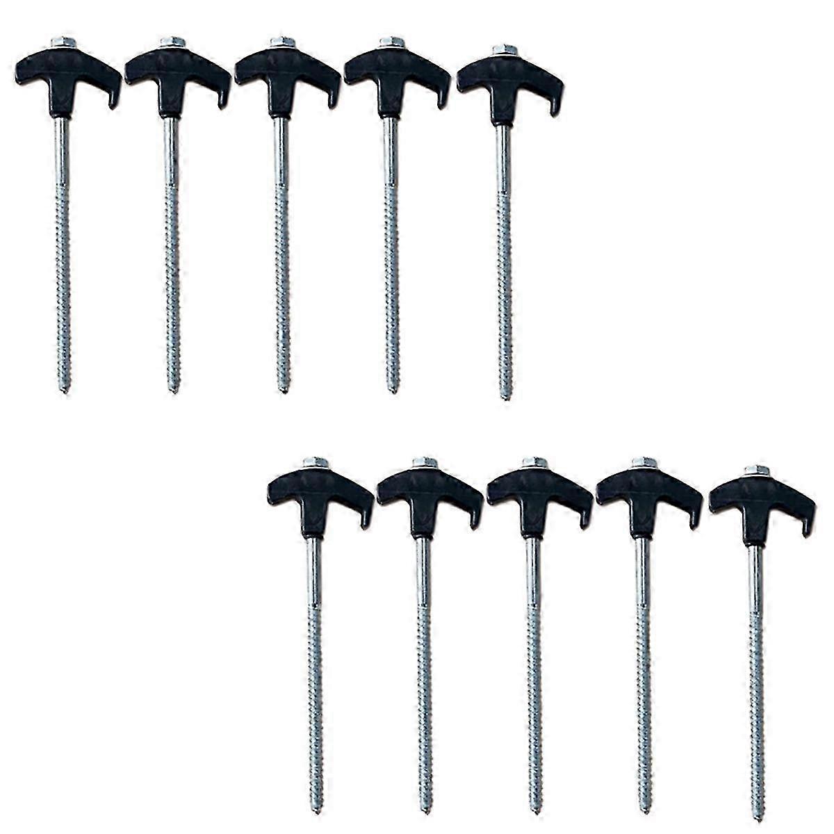 Our Tent Stakes Setup faster so you can sit back with a beer while watching other campers struggle. With the help of a cordless drill or impact driver, these easy-to-use stakes will have your tents, canopy, gazebo, awning, guy lines or tarps secured to the ground in seconds. Made from high-quality steel with a threaded end for easy insert and superior grip when drilling into various hard surfaces Whether it's grass, hard soil, gravel, or anything in between, it holds securely. Our tent stakes are designed to be easily installed with either a cordless drill or a sledgehammer, making it easy to set up your tent in any terrain. Whether you're looking to secure your tent, awning, -up, canopy, gazebo or even to secure your dog leash. Our tent stakes are perfect for campers who want to spend less time setting up and more time enjoying the outdoors. With our heavy-duty tent stakes, you can be sure that your tent will stay in place no matter what the conditions. Colour:Black Material:carbon steel+pp Package Contents: 10 x hexagonal threaded floor nails Only the above package content, other products are not included. Note: Light reflection and different displays may cause the color of the item in the picture a little different from the real thing. The measurement allowed error is +/- 1-3cm.