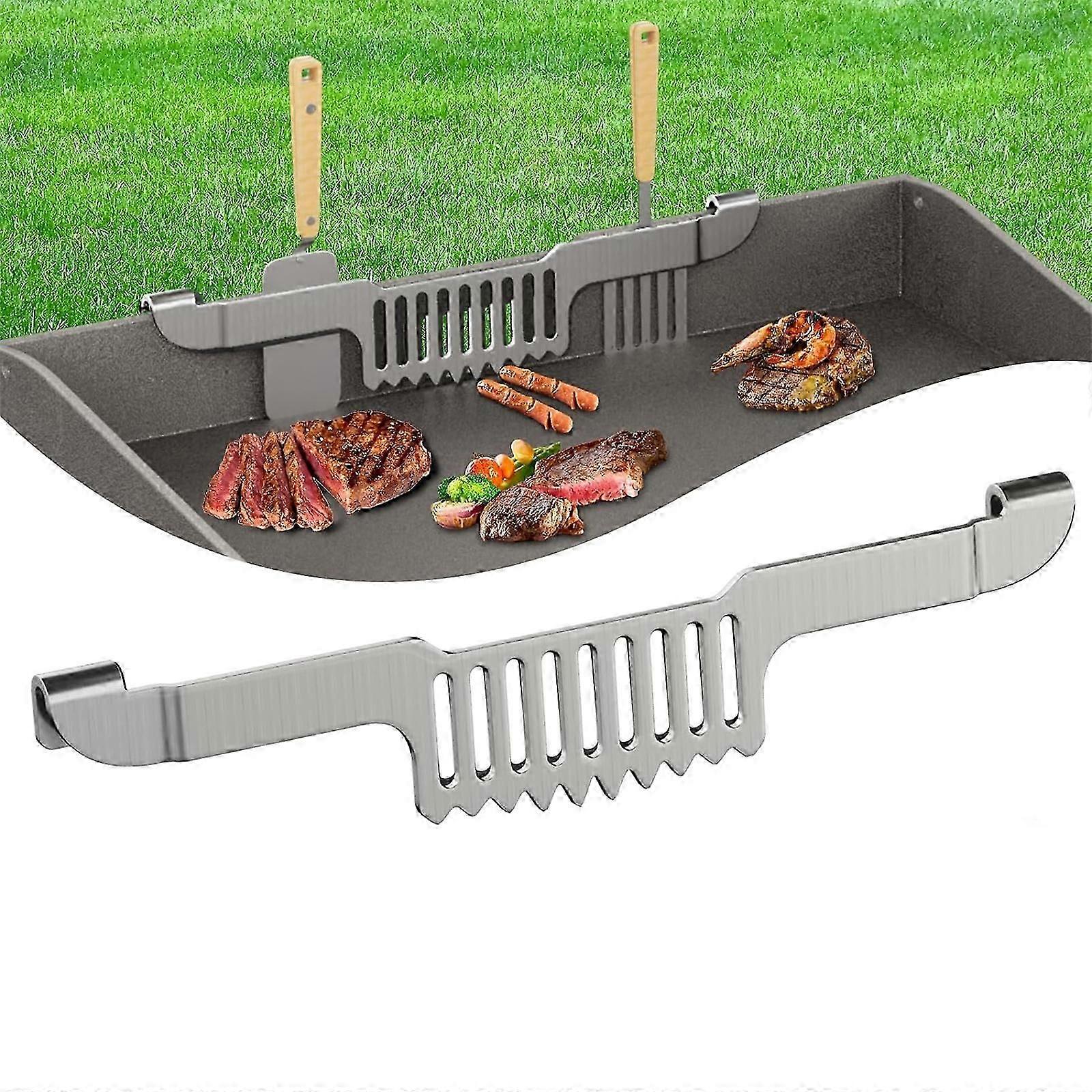 -Essential Blackstone Griddle Accessories- the grease gate spatula holder blocks food from falling, while allowing oil to get out. besidesit can be placed long spatulas, slotted spatulas, grill scrapers, fish turners and other griddle spatula holder. great for outdoor camping picnic grilling. -Magnetic Tool Holder- our grease gate barbecue spatula rack with magnetic buttons at both ends, the rack is fixed by the function of magnet suction, not easy to fall off and easy to move, you can adjust the position of the rack at any time. -High Quality Material- the griddle spatula holder is made of high quality thickened stainless steel, combined with excellent forging technology and superb grinding technology, strong and durable, not easy to rust, corrosion and high temperature resistance. -Easy to Clean- cleaning can be completed by washing with water or wiping with wet clothcan also be washed in a dishwasher. -Warm Tip- may not fit shallower griddle, please measure the depth of your griddle before purchasing.do not touch it directly with your hands when using it.if you have any problems with grease trap spatula holder, or you find that the received products have defects, please contact us in time and we will give you a satisfactory solution.