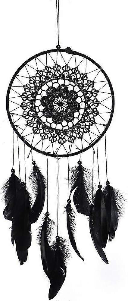 Black Dream Catcher, Dream Catcher Dreamcatcher with Beads and Feathers for Home Car Bedroom Decoration, 20.5cm in Diameter