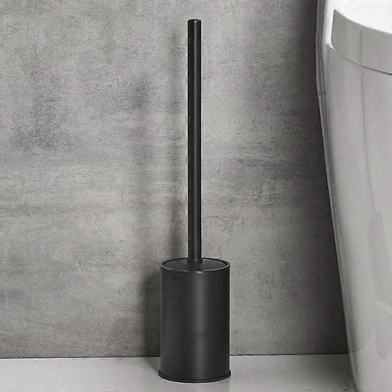 Black Toilet Brush and Short Toilet Brush Holder - Free Standing Toilet Brush Holder - Aluminum Toilet Brush for Bathroom (Black)