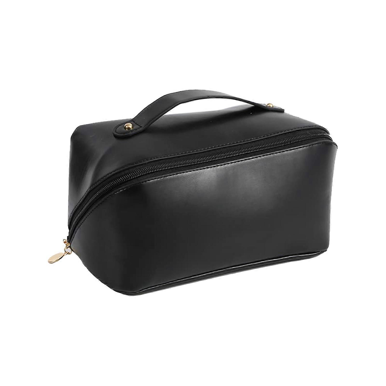 Black Travel Cosmetic Bag, High Capacity, PU Leather, 23x11x10cm