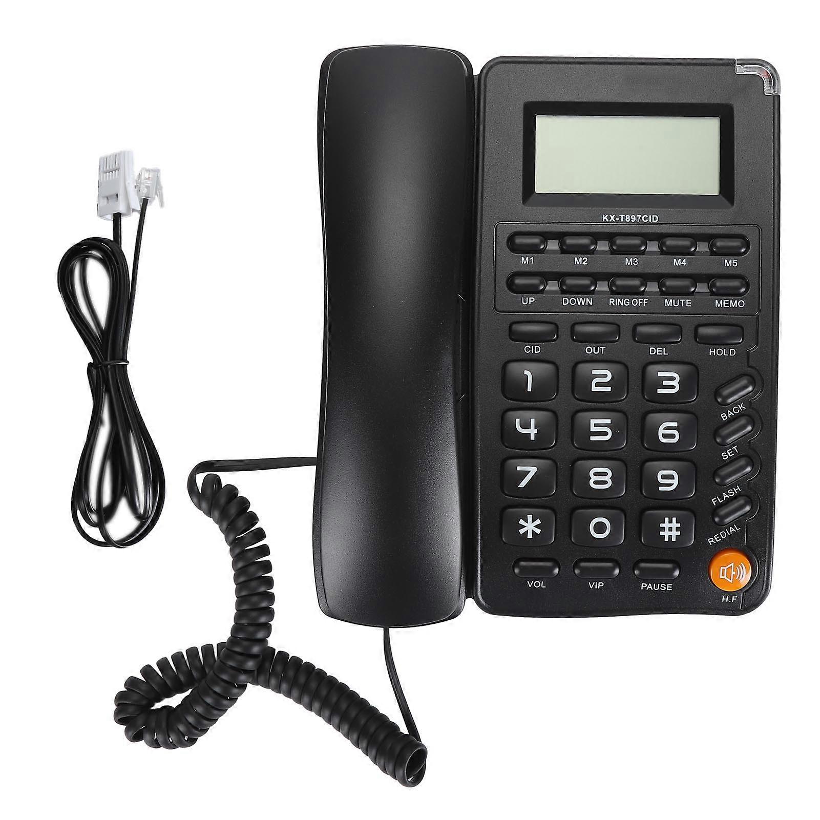 Black Big Button Corded Landline Phone with 16 Bit HD Screen for Home, Hotel, Office