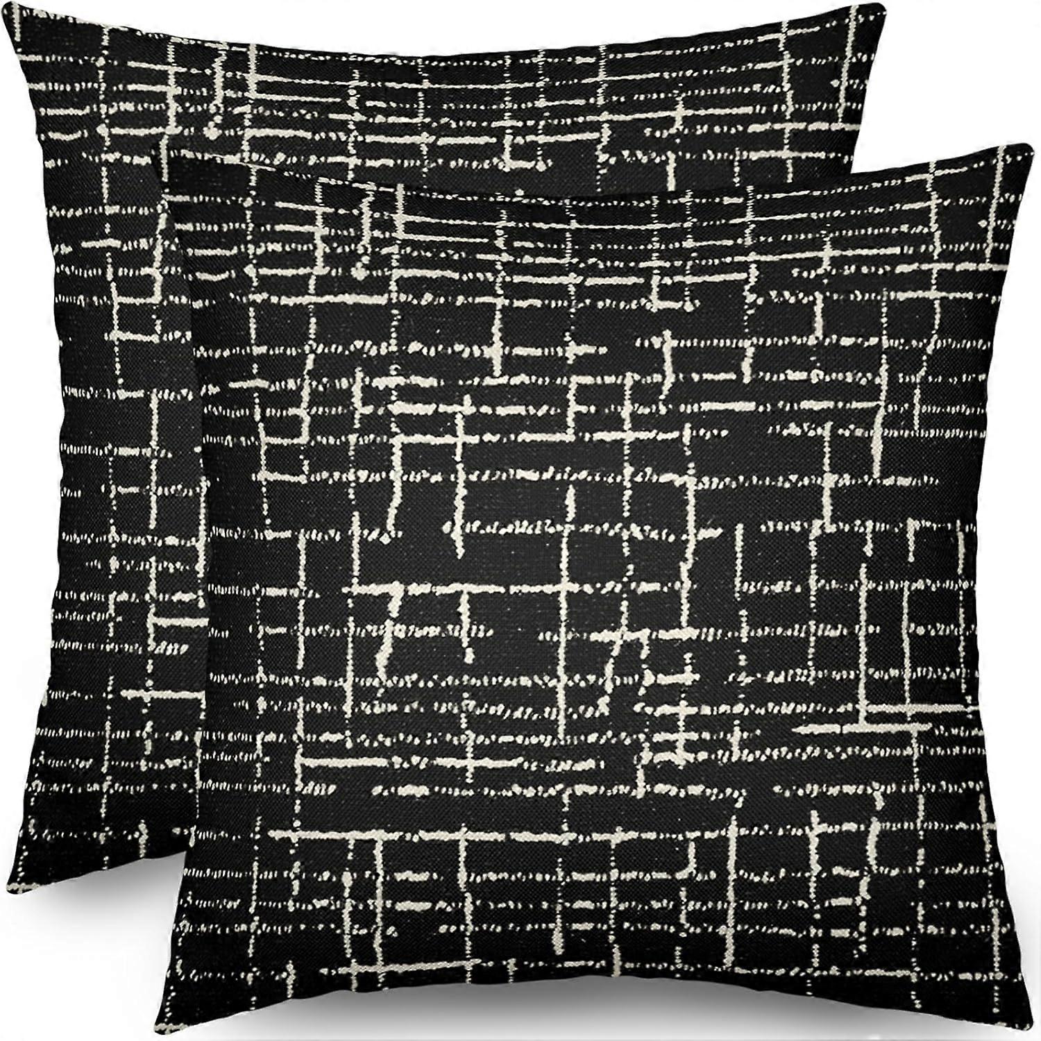 Black Pillow Covers 20x20 Set of 2 Modern Black Cream Textured Pattern Block Print Decorative Throw Pillows Outdoor Pillowcases Farmhouse Style Linen