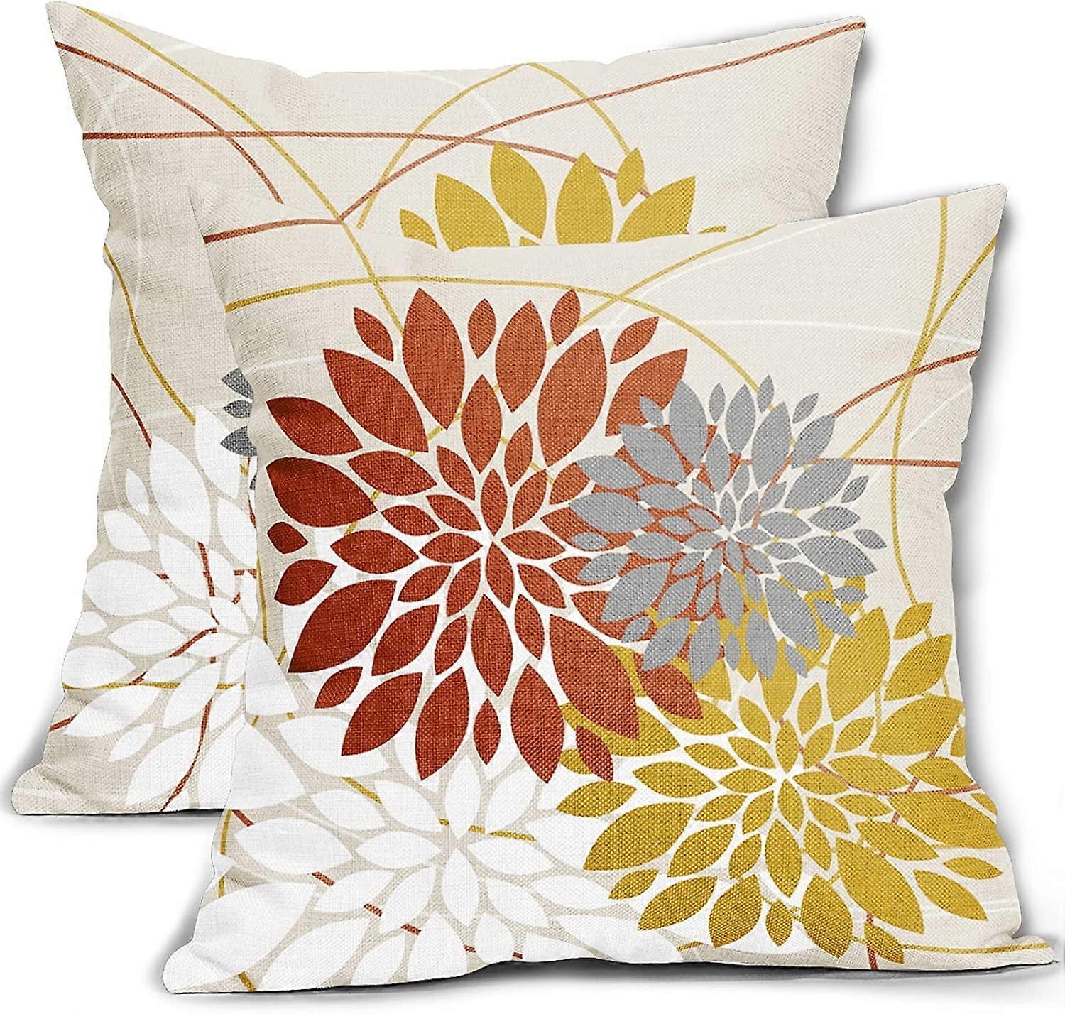Black Brown Pillow Covers 18x18 inch, Dahlia Flower Design, White Gray Throw Pillows, Farmhouse Decor for Living Room Sofa Bed, Modern Floral Linen