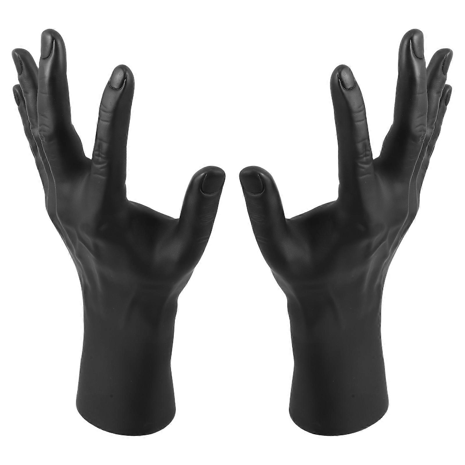 Black Plastic Male Hand Model Jewelry Display Stand 2Pcs for Home Retail Store and Jewelry Presentation