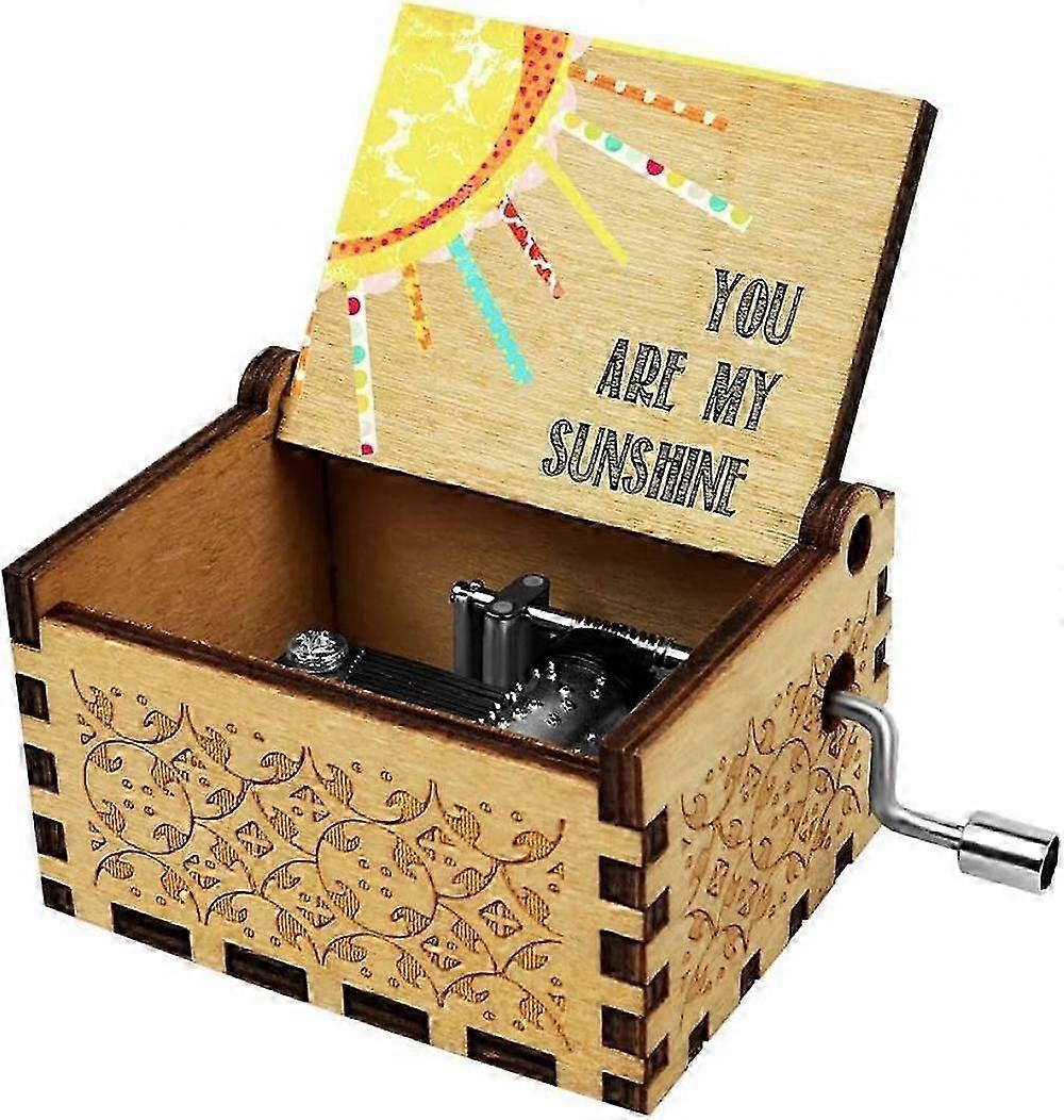 Black Friday You are My Sunshine Wood Music Box for Wife Daughter Son,Laser Engraved Vintage Wooden Hand Crank Music Box Gifts for Christma NL