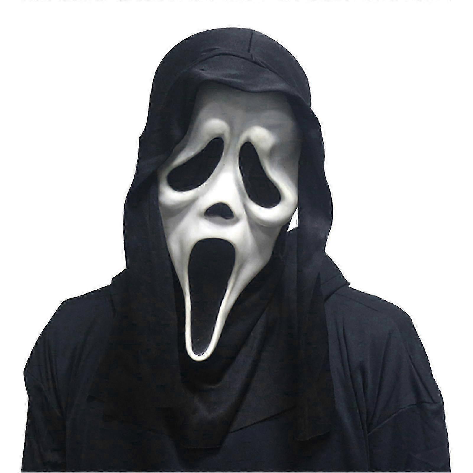 Scream Mask With Black Hood Ghost Face Halloween Fancy Dress Accessory