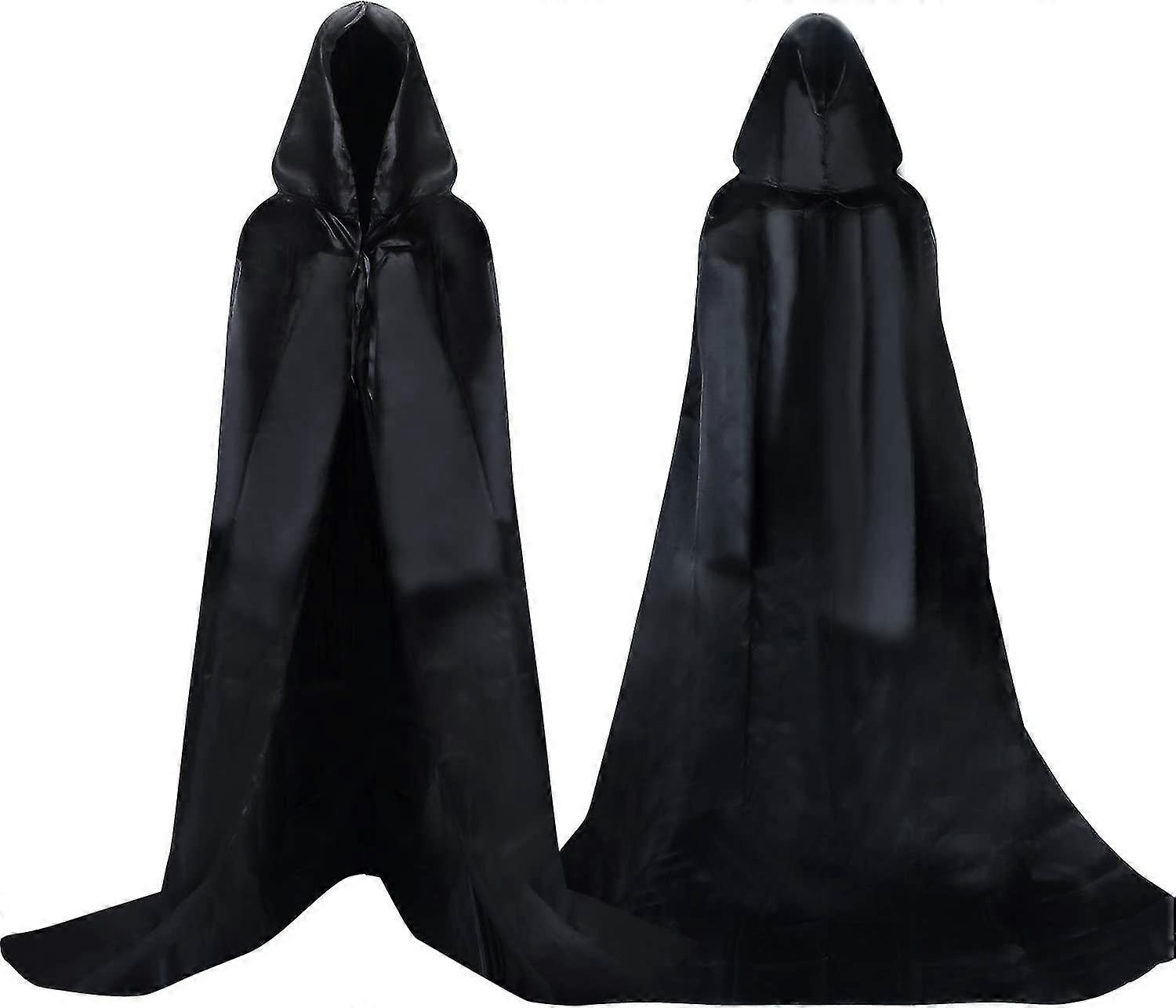 Black Hooded Cloak Adult Fancy Dress Costume Halloween,1pcsL