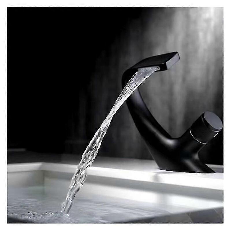 Black Basin Faucet-Bathroom Mixer Tap-Waterfall Faucet for Solid Basin-Super Quality FaucetsBlackA