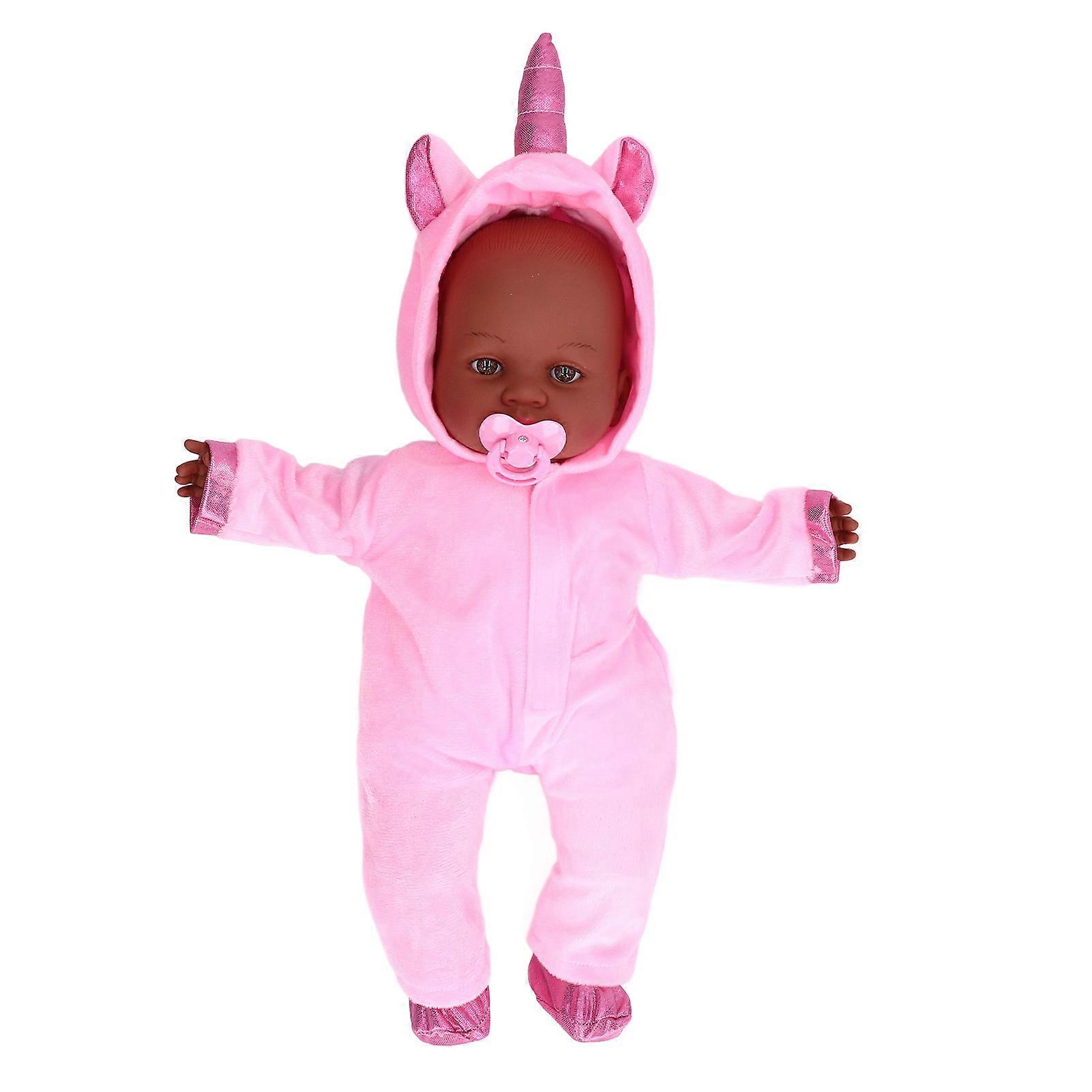 Black Baby Doll 16 Inches Touch Soft Black Vinyl Doll with Pink Jumpsuit Socks Pacifier