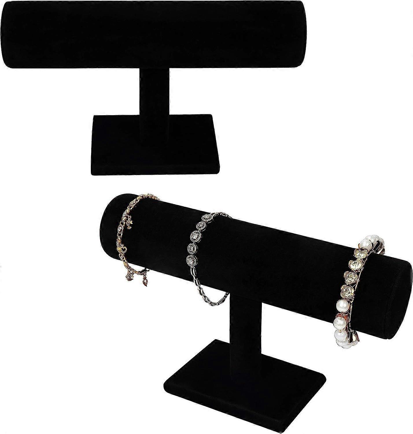 Black Velvet T Bar Bracelet Jewellery Display Stand - Showcase Home Organiser Holder Rack For Jewellery, Watches, Necklaces and Bangles(2pcs, black)