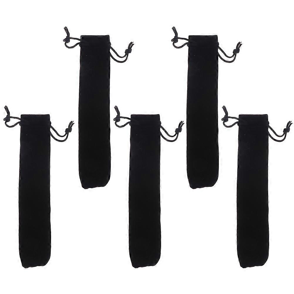 Black Pen Pouch Flannelette Drawstring Closure 5Set