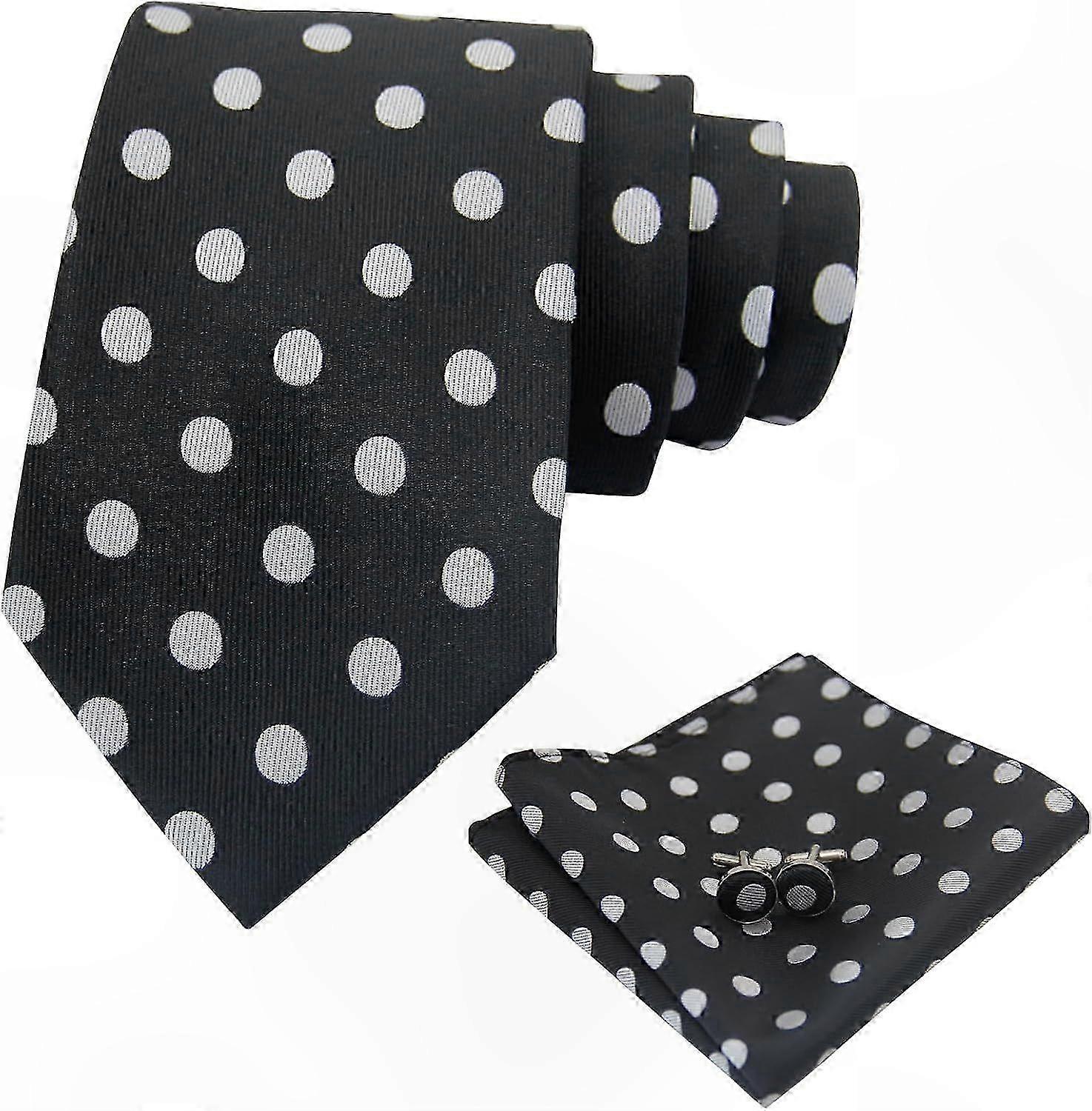Black and White Polka Dot Tie Set for Men with Pocket Square and Tie Combo Formal Accessory Collection
