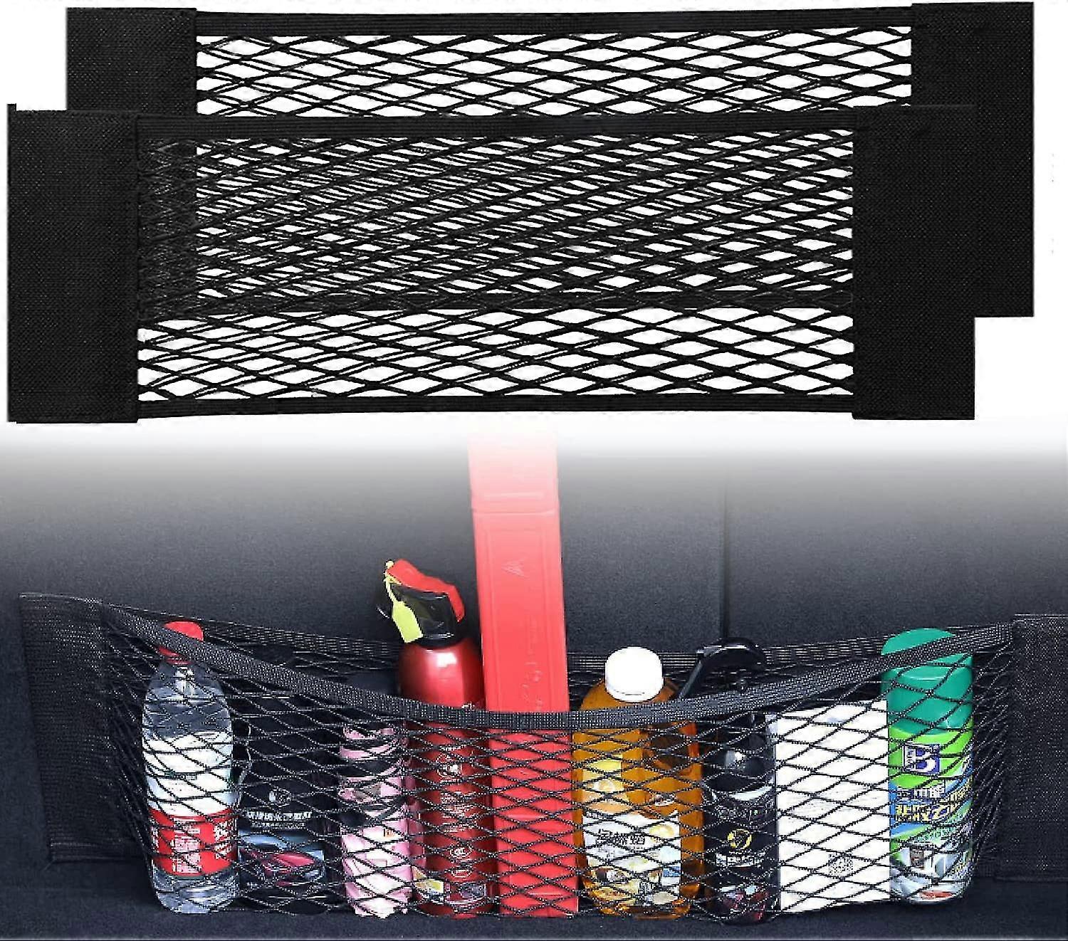 Black Magic Adhesive Cargo Net Elastic String Pouch, Car Back Rear Trunk Seat Mesh Net 2 Pcak-80x25cm