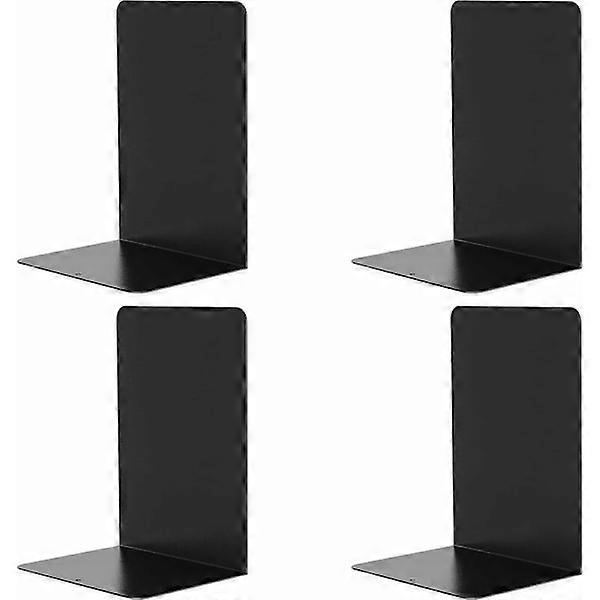 Black Metal Bookends, 2 Pairs Decorative Metal Book Ends for Shelves, Metal Book Dividers Stop Support with Non-Slip and Scratch-Free