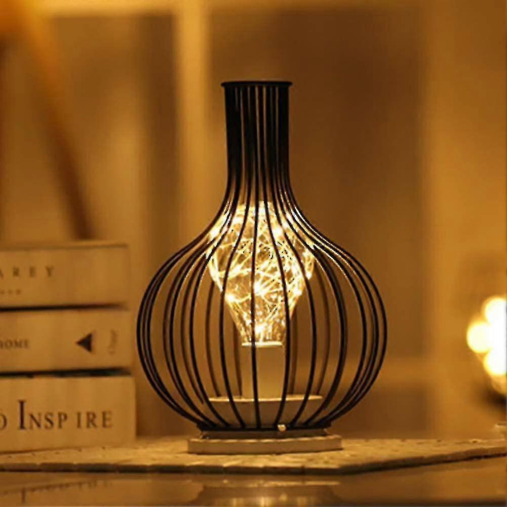 Black Metal Wire Table Lamp, Modern Iron Basket Cage Style Night Light, Retro Bedside Lamp Parking Light Battery Operated For Bedroom