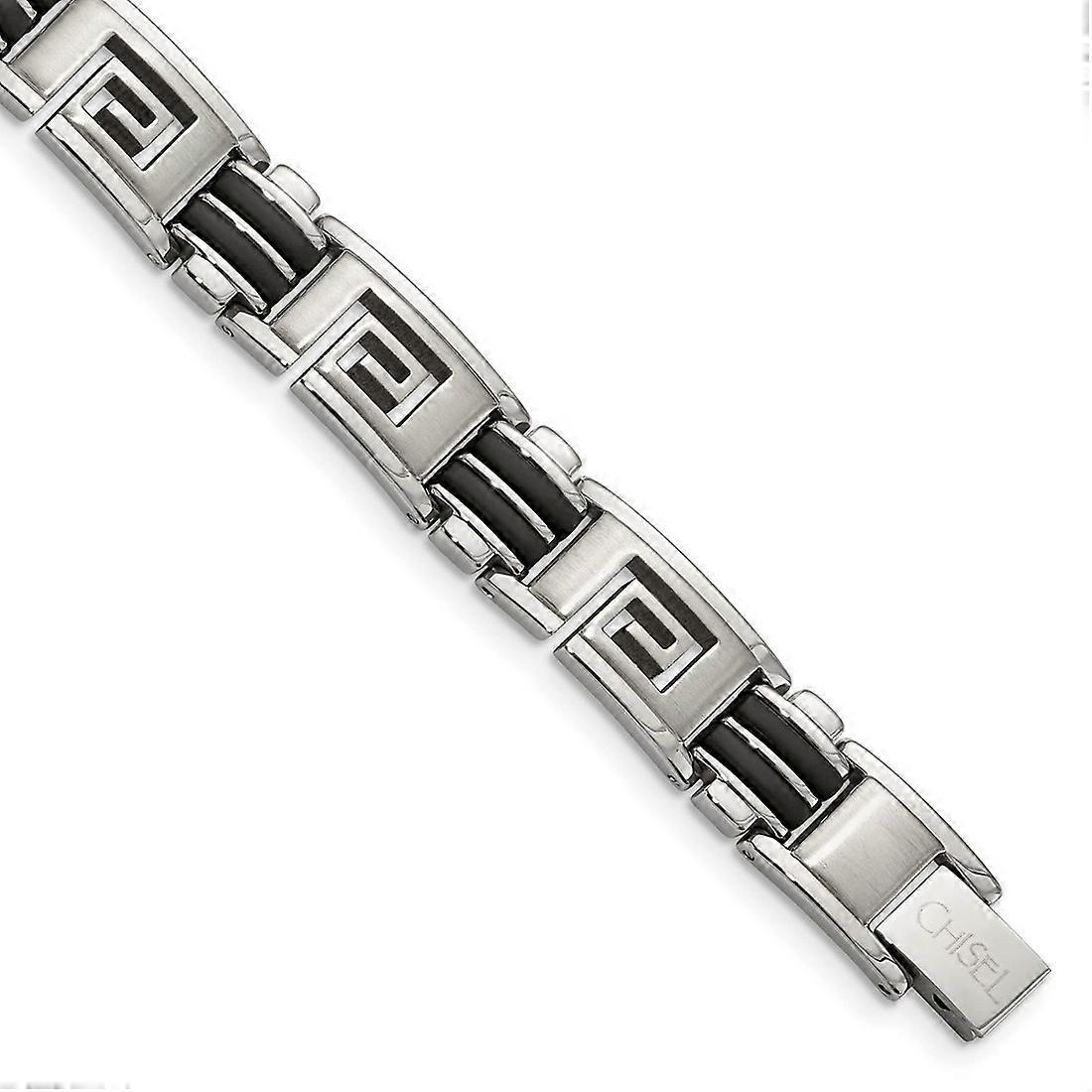 Stainless Steel Brushed Polished Fold over Black Rubber and Satin Bracelet 8.5 Inch 9mm Wide Link-Bracelet for Women