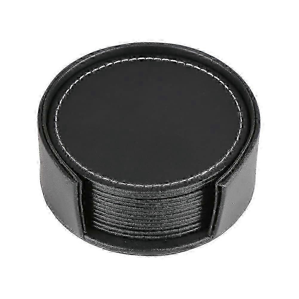 Black leather drink coasters, 6-piece set with tray, stylish, durable, waterproof and easy to clean