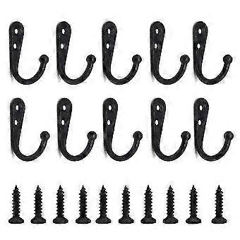 Black Retro Coat Hooks - Set of 10 Metal Wall Hooks for Bathrobe, Home, Shelves, Drawers, Lockers, Bathroom