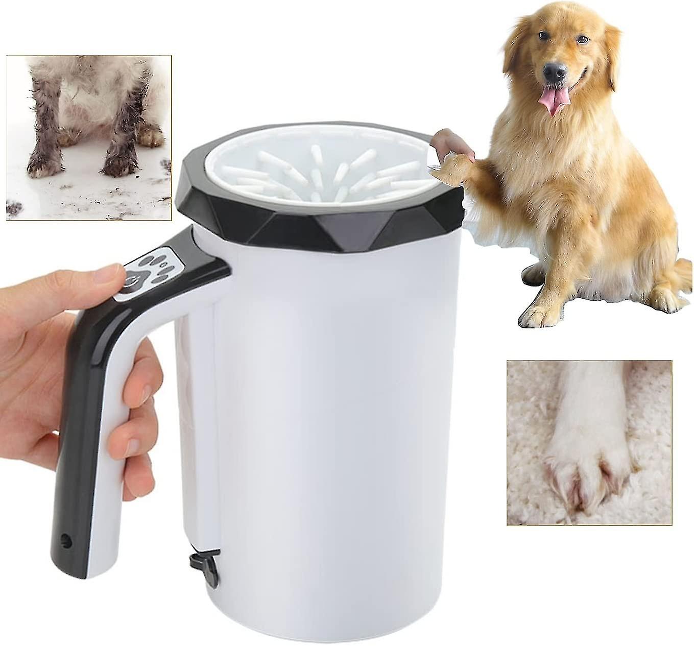 Powerful and Effective Cleaning The upgraded automatic dog paw cleaning cup has 7.4V high-power operation function, which will provide better cleaning conditions for pets, and the internal brush is made of soft silicone, durable and soft. This new dog paw cleaner has stronger cleaning capabilities than other paw cleaners. Have one to solve your paw cleaning problems and make your pet fall in love with paw cleaning products. NOTE: Please wipe the base dry after use Rechargeable Long Life Use built-in rechargeable 7.4V motor, still has the same power as the plug-in version, but operates with a lower sound. More convenient to use and carry outdoors, 2400mAh long-life battery, fully charged in 5 hours, can clean pet paws for about 10 days. Different from other electric pet paw cleaners, they have 3.7V, 5V motor for cleaning only, MYPIN upgraded version rechargeable dog paws The cleaner has a super 7.4V motor that is stronger than other products. The detachable body is designed as a two-in-one design to provide people with automatic and car cleaning methods. This dog paw cleaner can be disassembled into two parts, when you want to clean the paws by hand, just remove the rotating part to clean your pet. Careful brush design For better cleaning of muddy paws, a full silicone brush is added. Pour some water and shampoo (if you like) into the automatic paw washing cup, insert into the dog's muddy paws, and press the automatic button, soft The safe silicone brush will help you remove dust and dirt from your paws. Free your hands and reduce worries.