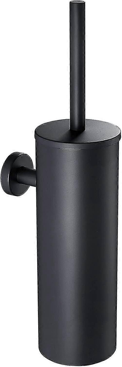 Black Wall Hung Toilet Brush with Holder, Long Handle 304 Stainless Steel, Antibacterial Brush Holder