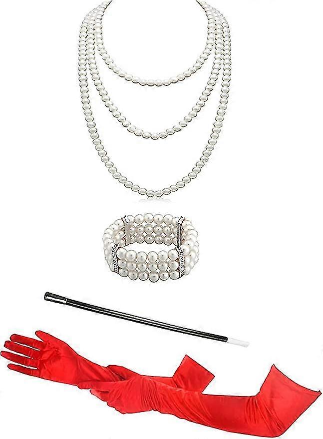 Black Gloves Costume Audrey Hepburn Accessories 1920s Flapper Costumes For Women Necklace Bracelet Plastic Holder