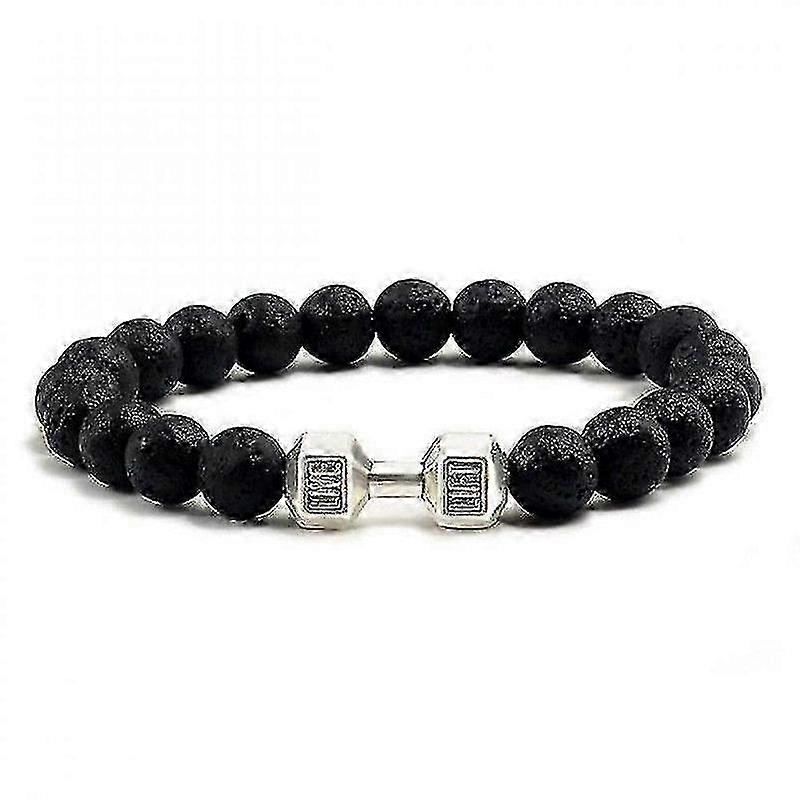 Black Volcanic Lava Stone Dumbbell Bracelet - Matte Beads Fitness Jewelry for Women & Men
