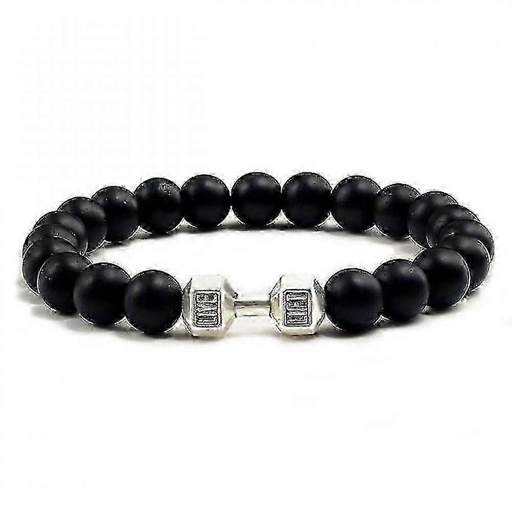 Black Volcanic Lava Stone Dumbbell Bracelet - Matte Beads Fitness Jewelry for Men & Women