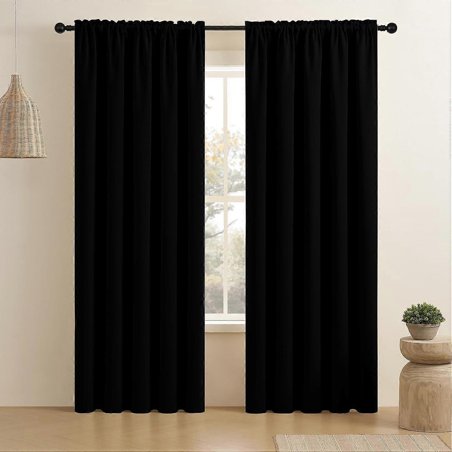 Black Blackout Curtains 84 inch Length 2 Panels Set, Rod Pocket Room Darkening