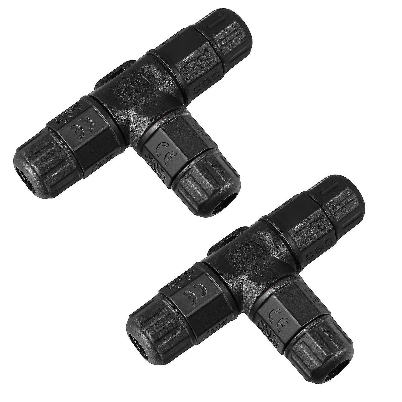 Black Waterproof Junction Box Connector 3-Way Design For Garden Appliances 3.93X2.75X0.98in Extension 2Pcs