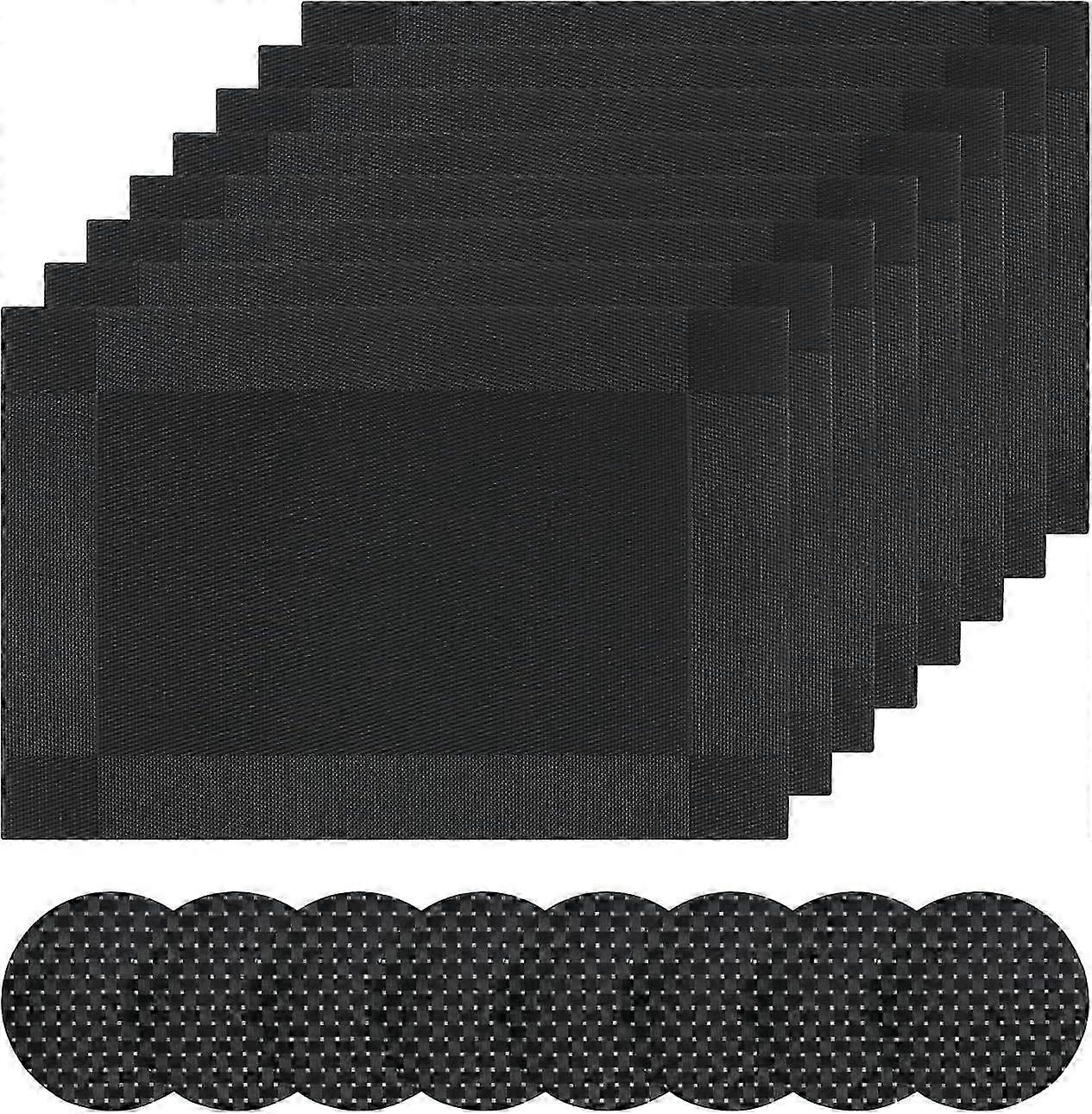 Black Placemats & Coasters Set of 8 - Heat Resistant, Washable