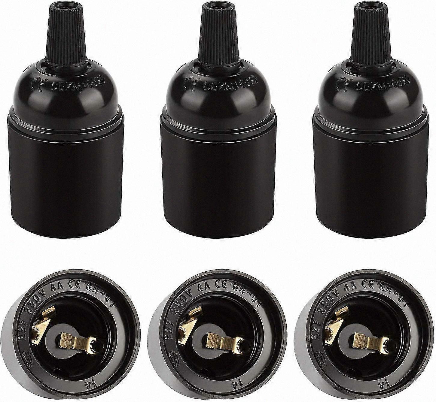 Black E27 Lampholder Set, Retro Edison Style Pendant Adapter, Bakelite Material for Decor, Industrial Design and DIY Projects (Pack of 6)
