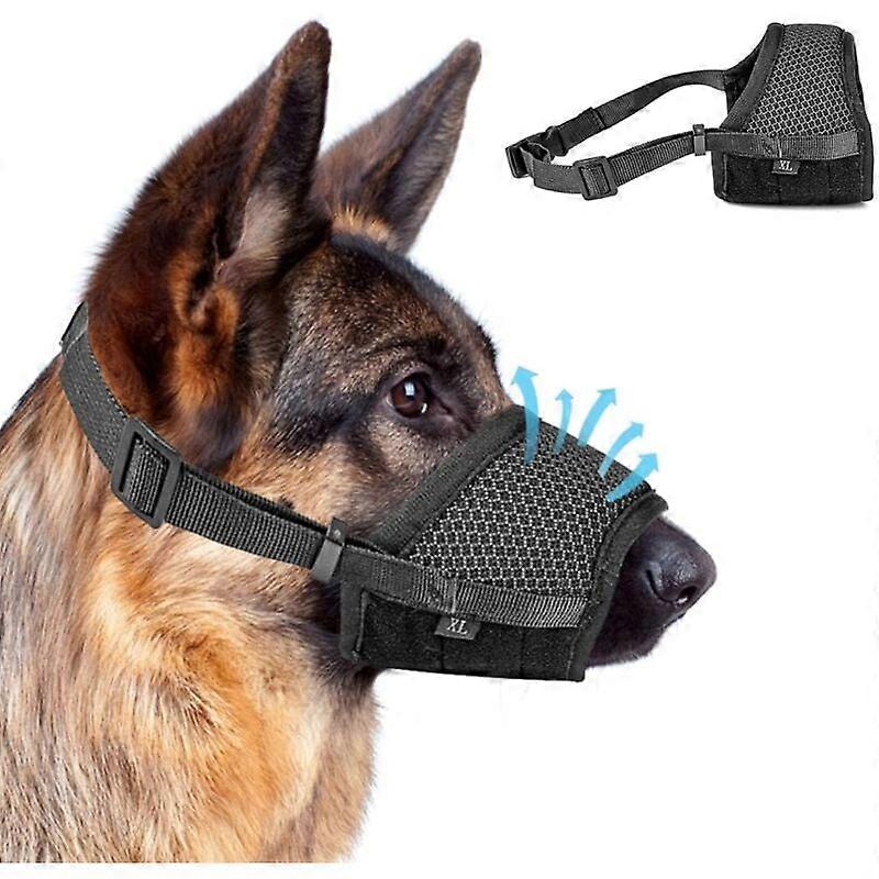 (Black) 1 Piece Adjustable Anti Bark Muzzle with Self-Adhesive Mesh RingAdjustable Anti Bark Muzzle for Large Medium Small Dogs.