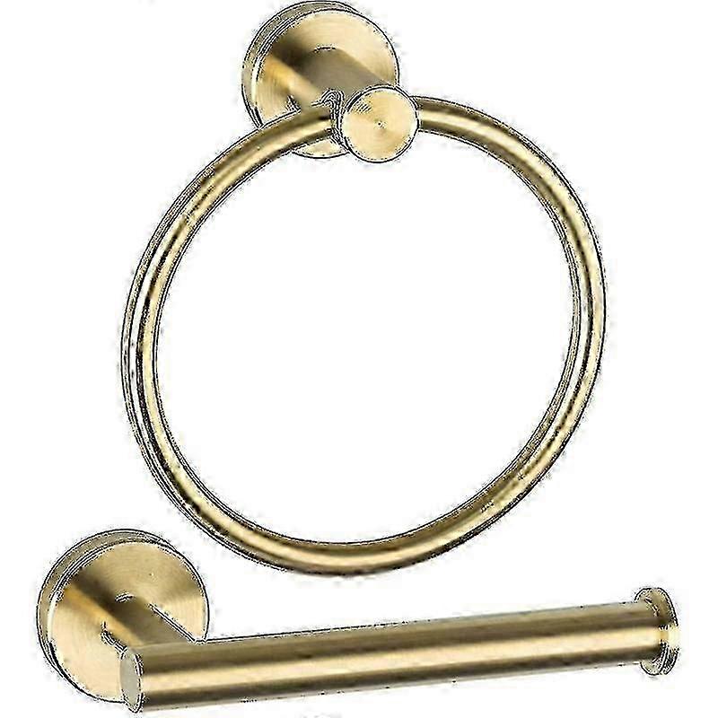 Brushed Gold 2-Piece Bathroom Set - Stainless Steel Towel Ring & TP Holder